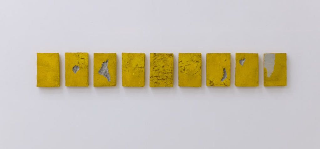 Resultado de cinco anos de pesquisa, o trabalho transforma fissuras e fragmentos de espuma em novas composições, em diálogo com imagens do sol e tonalidades amarelo-ouro. Entre contrastes e metáforas visuais, as obras evocam questões sobre luto, finitude e recomeço, articulando relações entre imagem, história, ciência, cosmos e subjetividade — com a psicanálise como um dos eixos de pensamento.