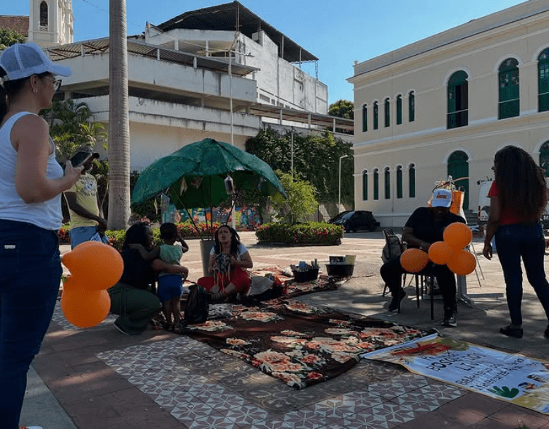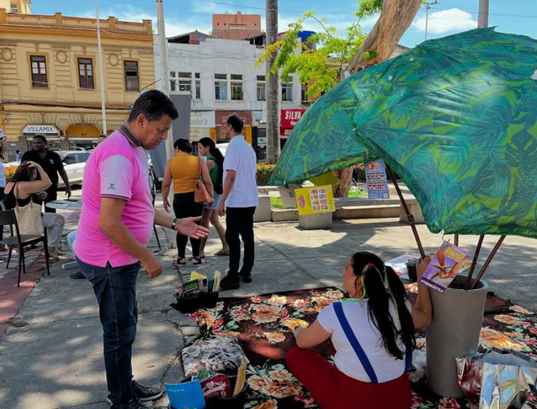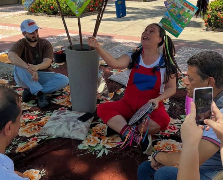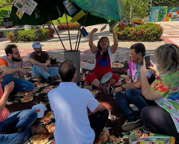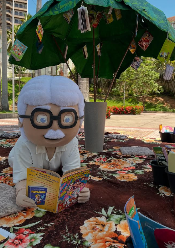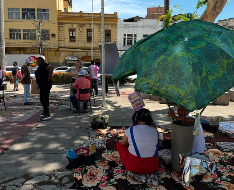 O evento transformou o espaço público em um ambiente de convivência literária e artística, com tapetes coloridos, livros pendurados sob um guarda-sol e atividades voltadas para todas as idades. O público pôde participar de contações de histórias, rodas de leitura e apresentações com o personagem Rubem Braga e seu cachorro Zig Braga, interpretados por cosplayers, que animaram a manhã e convidaram as crianças para mergulhar no universo dos livros.